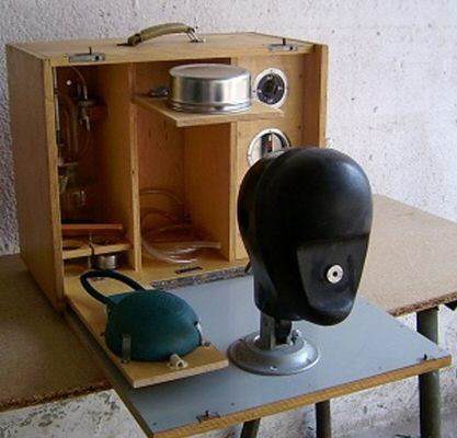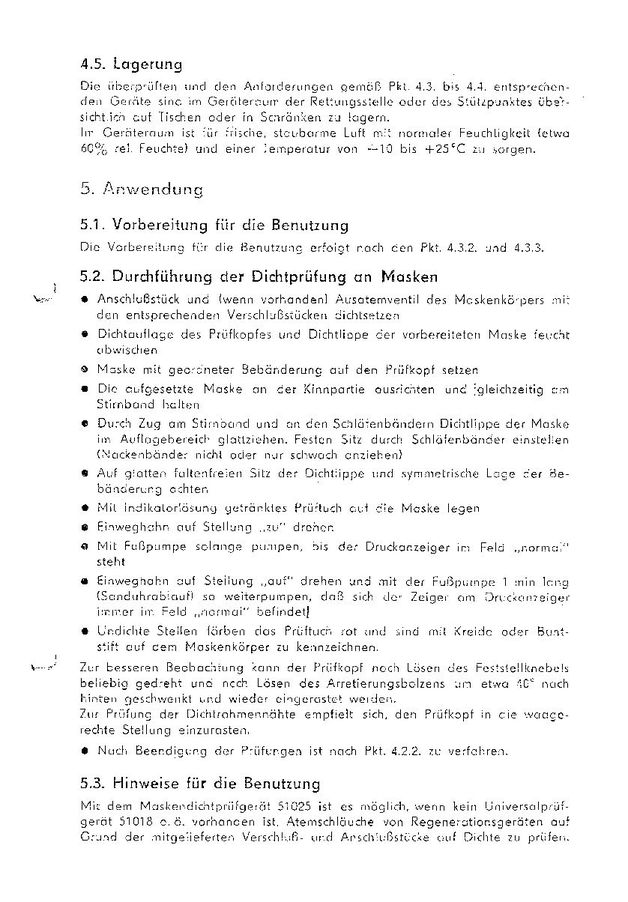 Überprüfung von Schutzmasken und Atemschläuchen auf Dichtigkeit Ist eine Verbesserung des Masken-Dichtprüfgerätes 51002 zur Prüfung der Atemschutz-Gesichtsmasken 13114 - 13335 durch Austausch des Prüfkopfes. Neuer Prüfkopf 51025 G01 U01 Veränderung Unterbringung Fußpumpe