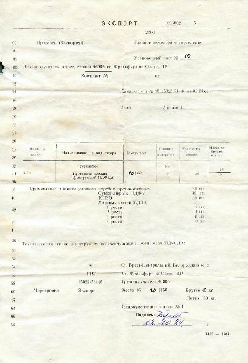 1 Größe Ф 6 Nr. der Pressform О Index (Tarnbezeichnung) Hersteller 87 Herstellungsjahr ... Quartal pro Punkt 1 Quartal 1A Marke des Maskenkörpers MD-1A