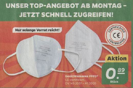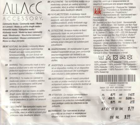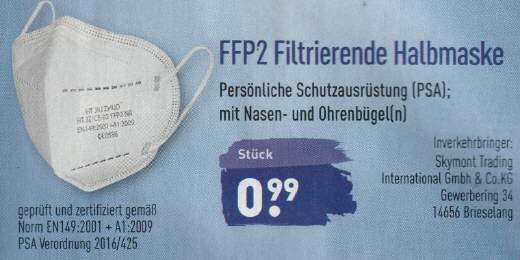 Preis Lidl 3,87 € für 2 Stück Kindermasken
