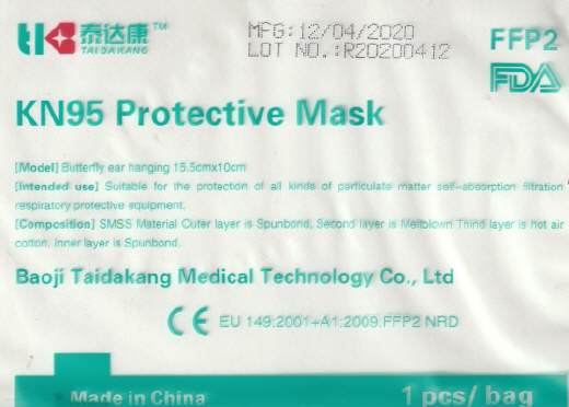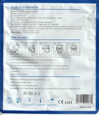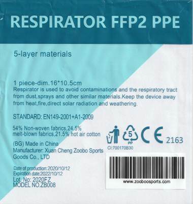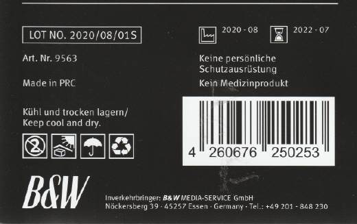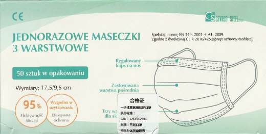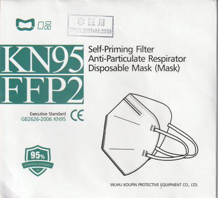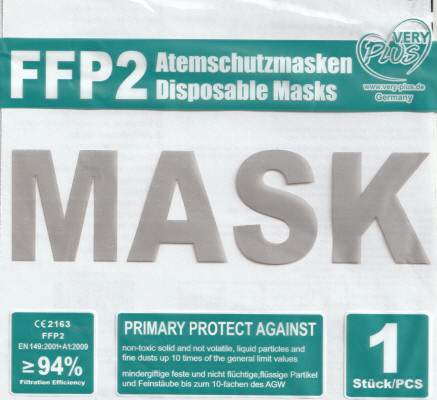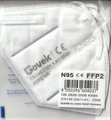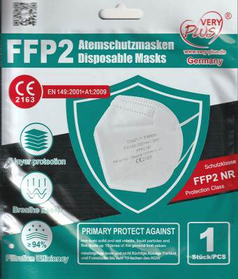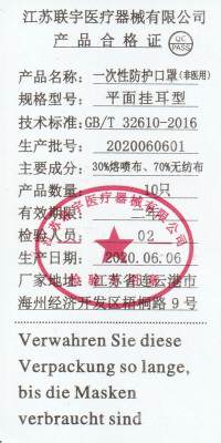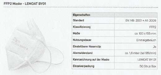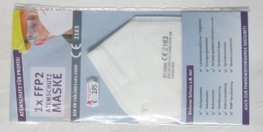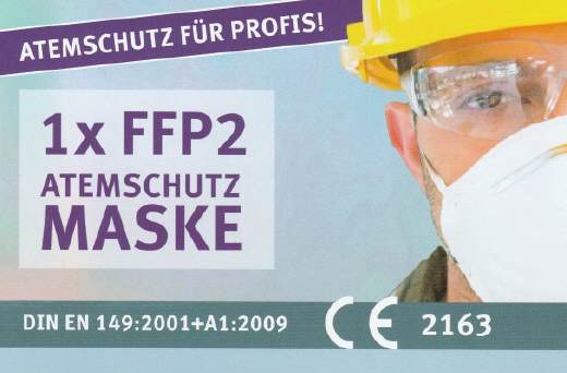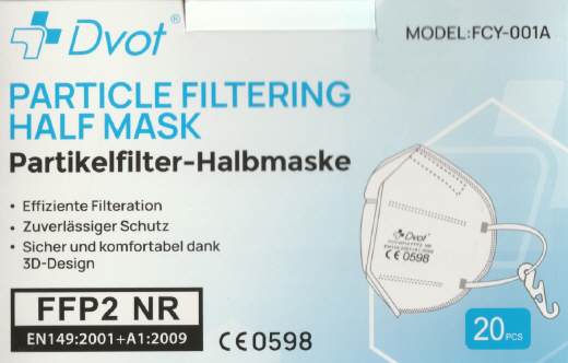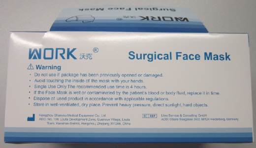 Karton 20 Stück, Maske in Folie, Haltebügel, Gebrauchsanweisung