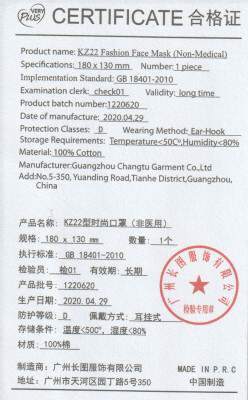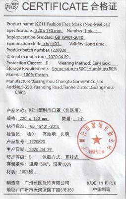 Waschbare Baumwoll-Gesichtsmaske (KZ11)