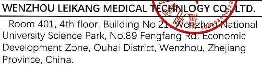 ZHEJIANG DONGMENG MEDICAL EQUIPMENT CO., LTD. Dongmeng Industrial Area Wuniu Yongjia, Wenzhou Zhejiang 325000 China