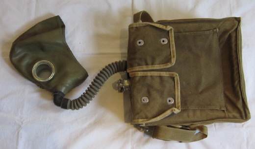 Maske defekt, mit rotem Gummi geflickt Hergestellt: 1960
