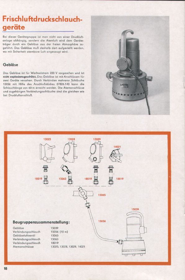 Bestehend aus:8539 A Gebläse8590 Verbindungsschlauch 5 m8579 Regelventil mit Koppel für Gebläseluft8558 Faltenschlauch mit Maskenanschlussstück9535 B GTG-Vollmaske