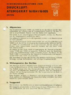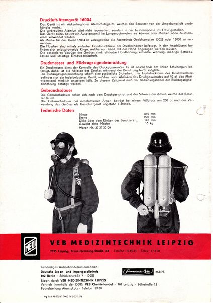 Druckluft-Atemgerät 16004 bzw. "Medi 85.105" auch DA 16004 Preis 1975: 635,00 MDN