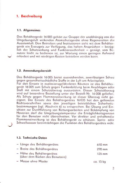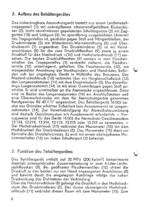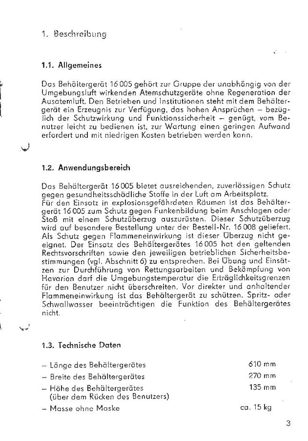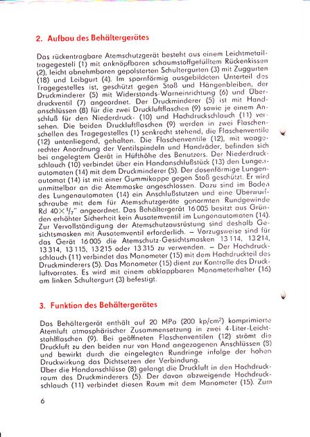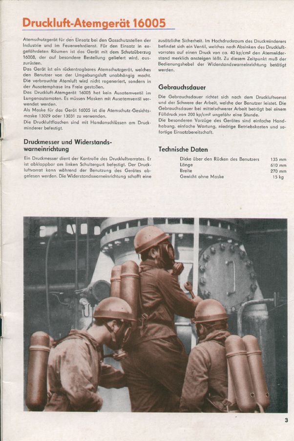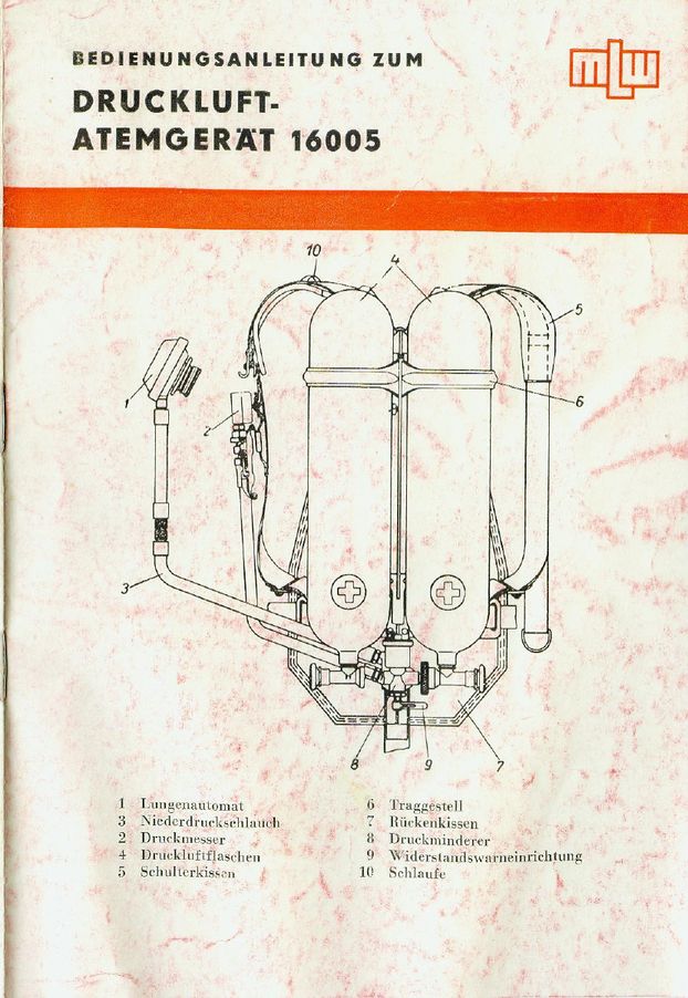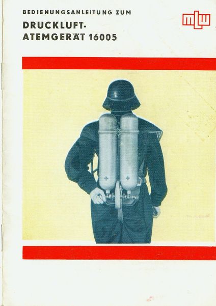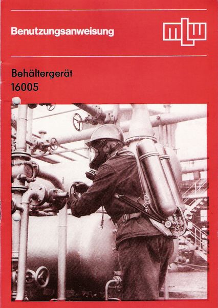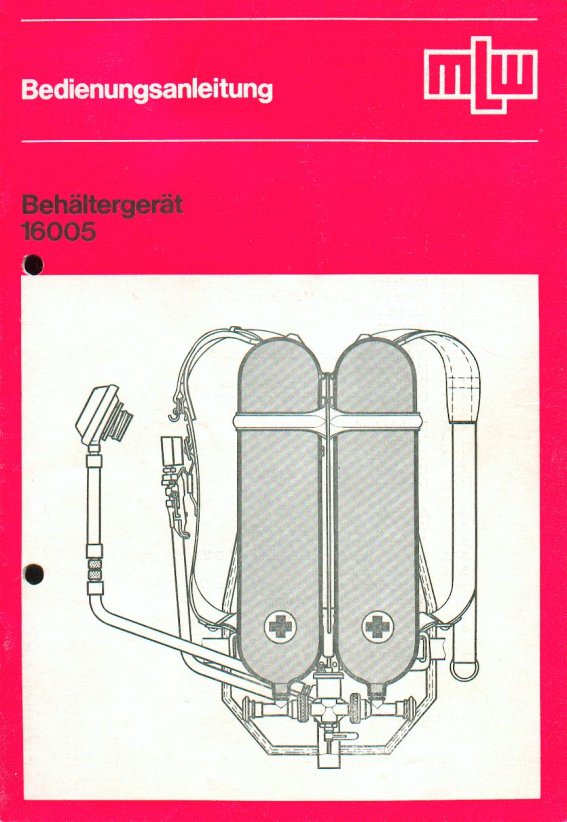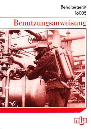 Behältergerät 16005 bzw. Druckluft-Atemgerät 16005 Preis 1975: 642,00 MDNEinsatz bei der Feuewehr ab ca. 1969 bis ca. 1985 Einstellung der Produktion Ende 1984 (lt. Atemschutz Information 1985 Seite 12)(z.Z. im IFM)