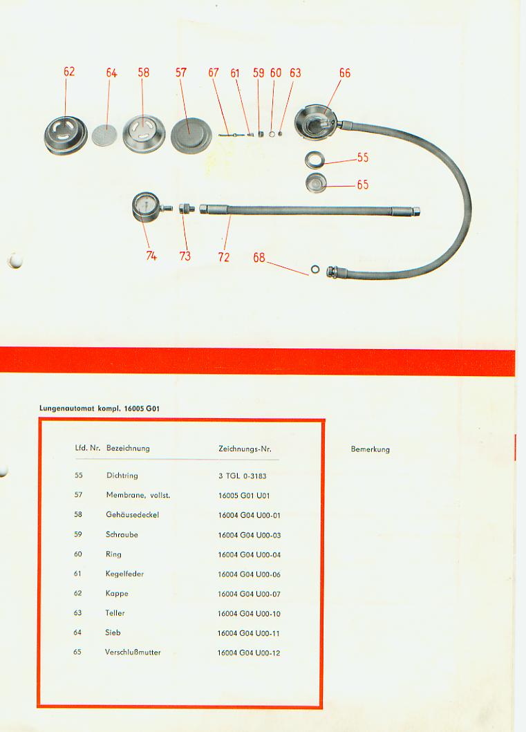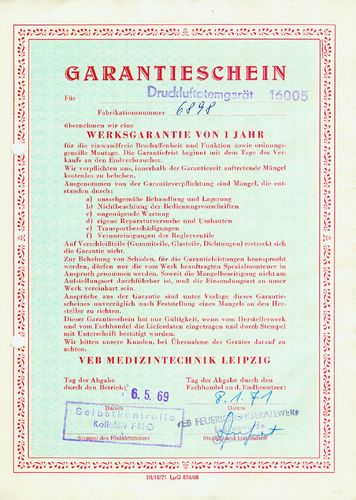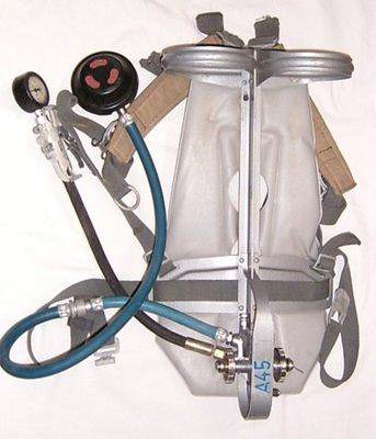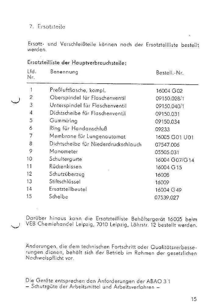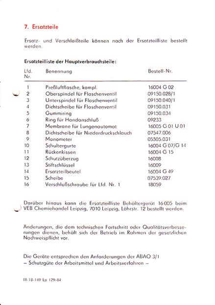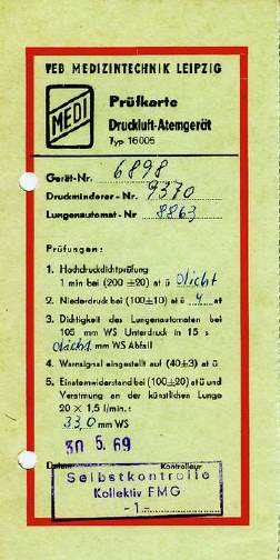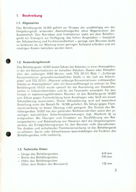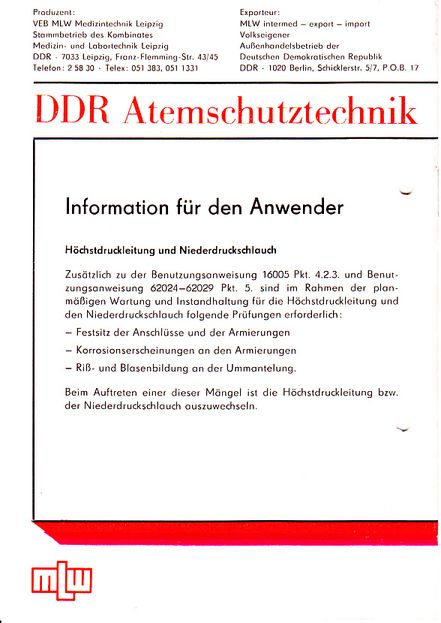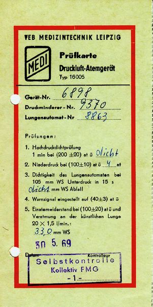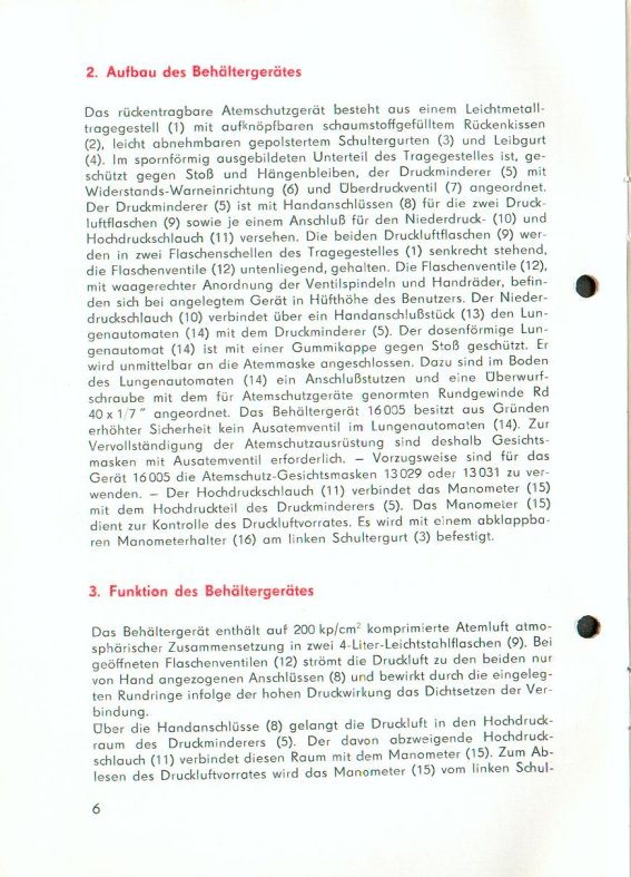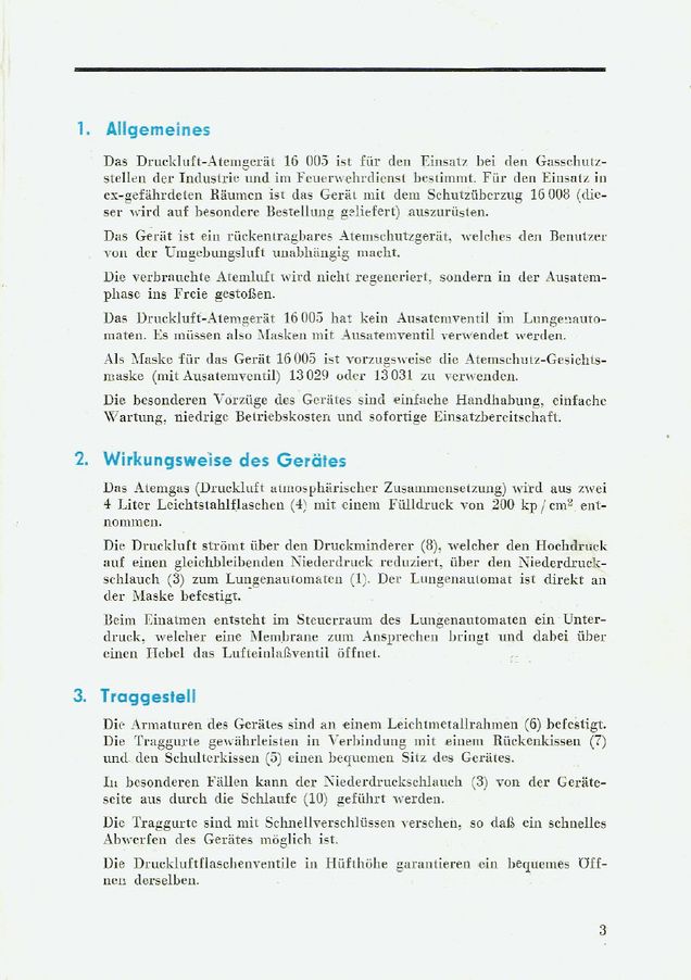 Behältergerät 16005 bzw. Druckluft-Atemgerät 16005 Preis 1975: 642,00 MDNEinsatz bei der Feuewehr ab ca. 1969 bis ca. 1985 Einstellung der Produktion Ende 1984 (lt. Atemschutz Information 1985 Seite 12)(z.Z. im IFM)