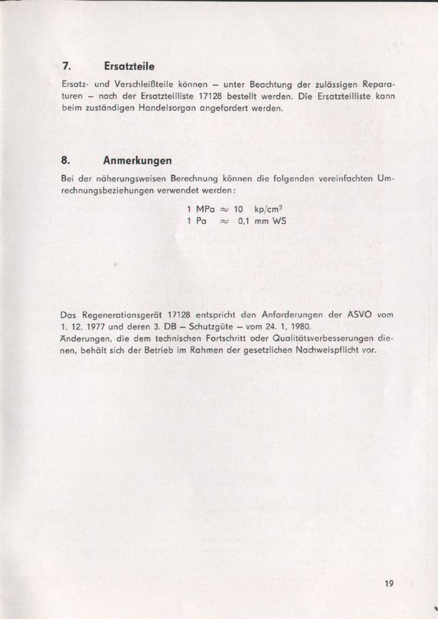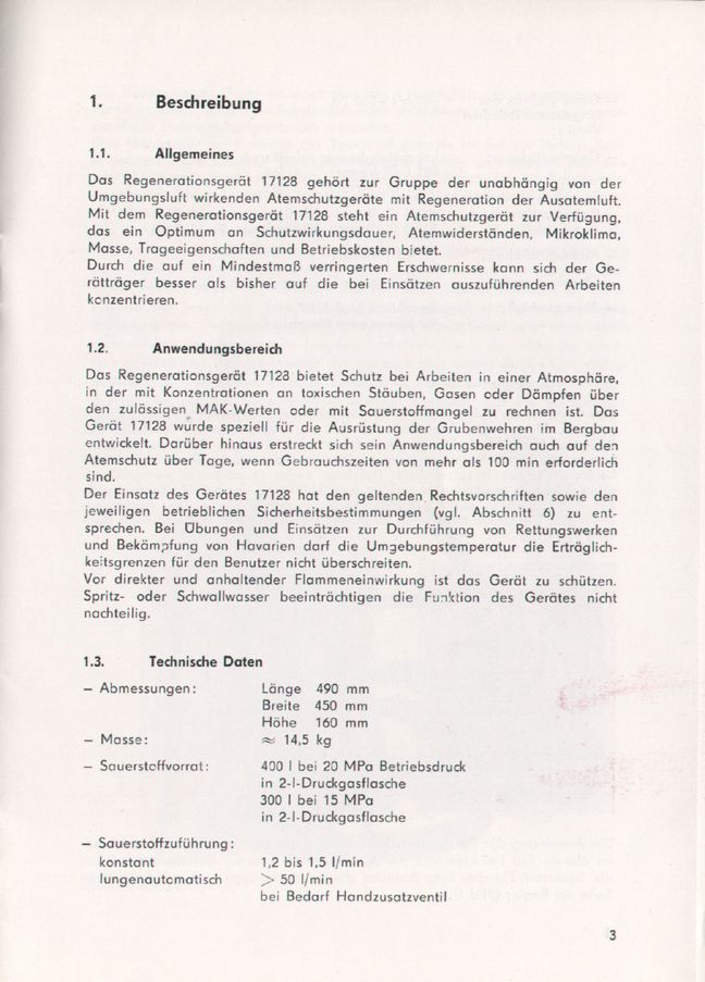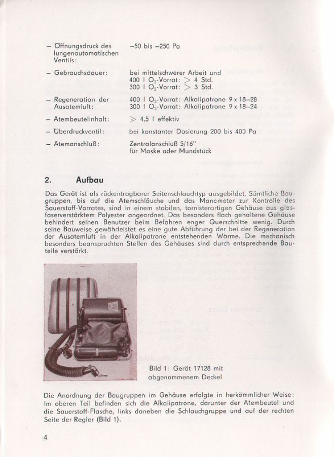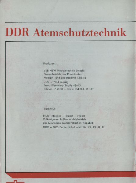 1. Prospekt "Atemschutzgesichtsmaske" MLW 2. Prospekt "Regerationsgerät 17128 Großer Aktionsradius" 19883. Ersatzteilliste Regenerationsgerät 17128 G 50; 1985 4. Atemschutz-Informationen 1983 Seite 4