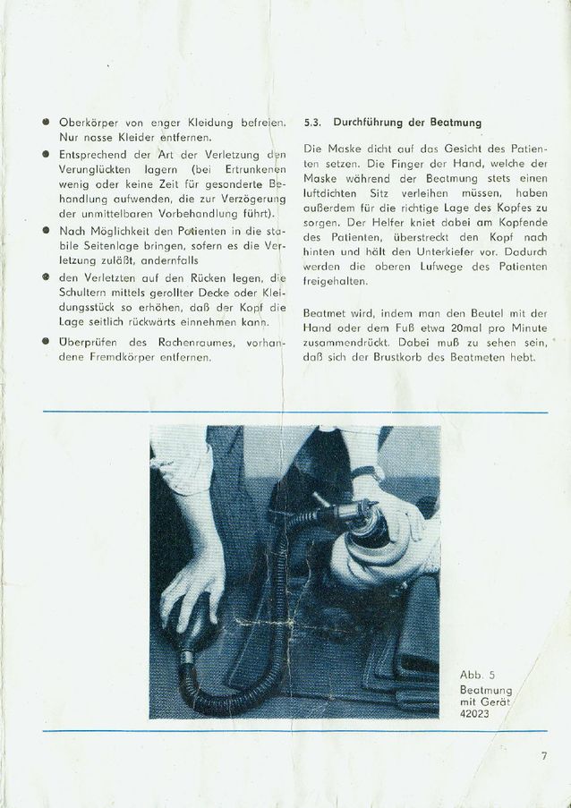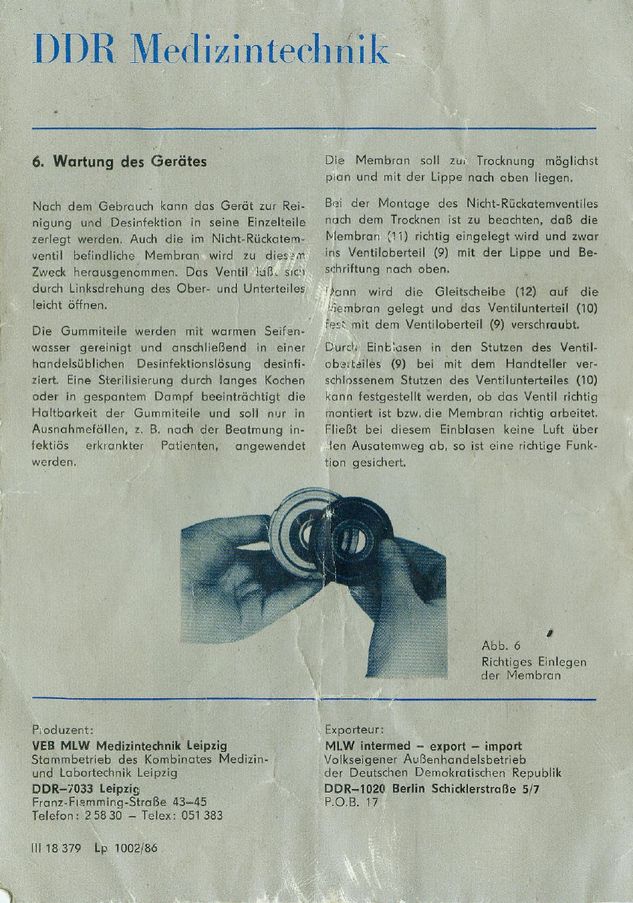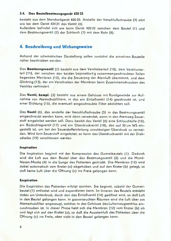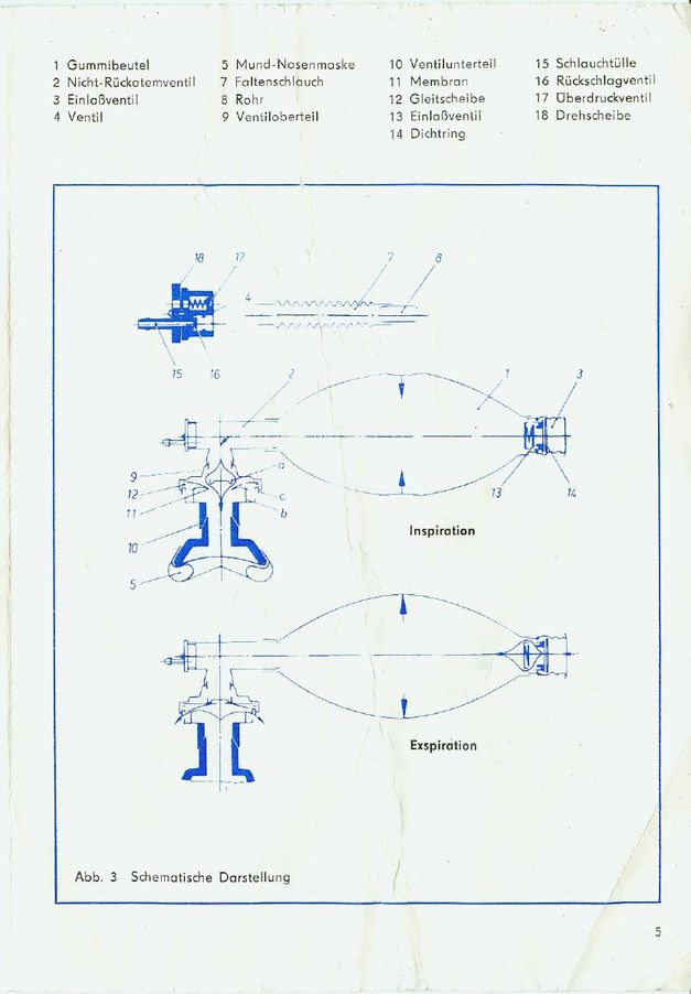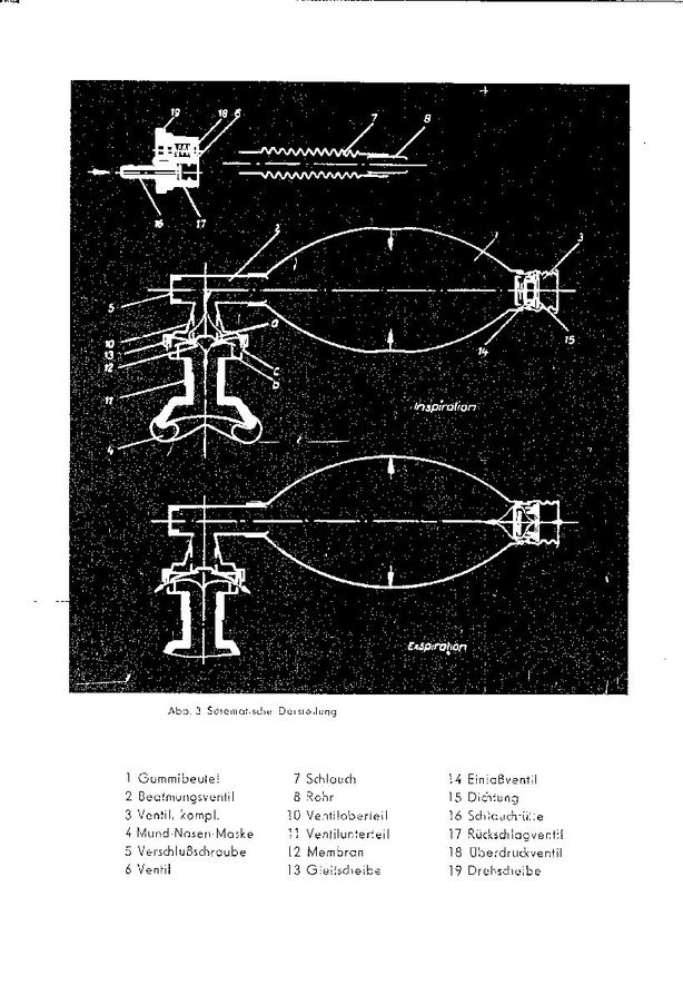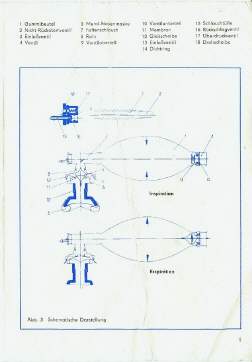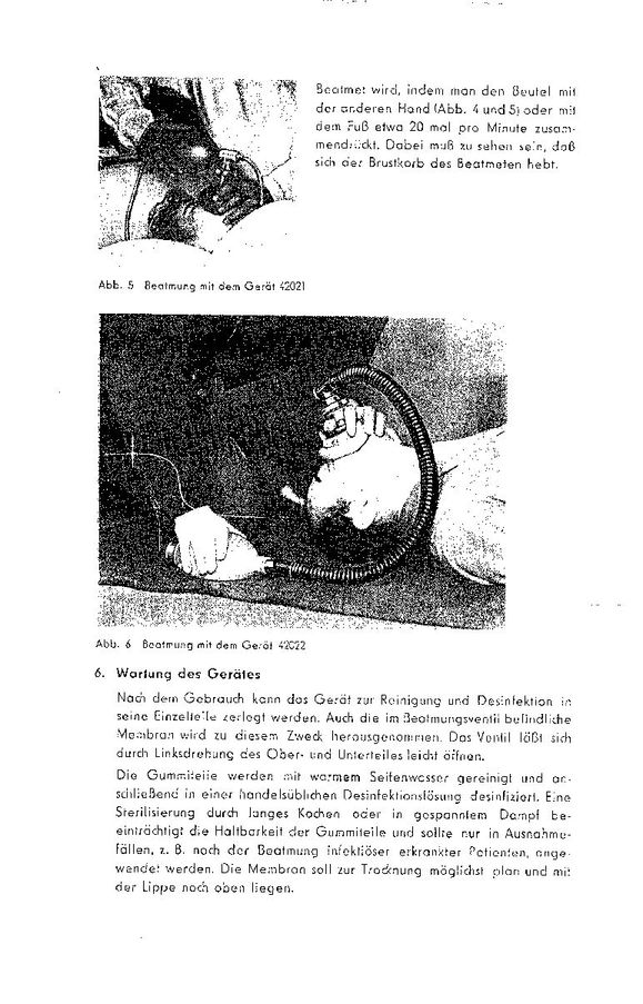Das Beutelbeatmungsgerät 42023 oder 42021 war Bestandteil der Ausrüstung der SMH 3 (Schnelle Medizinische Hilfe). Die Unterbringung erfolgte im Fach 13 des Instrumentenschrankes. Im Bild der Barkas B 1000 SMH 3 des Blaulichtmuseums Beuster in 39615 Beuster. Bild 1 Bild 2