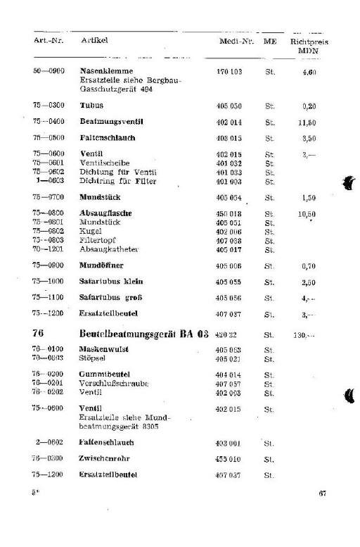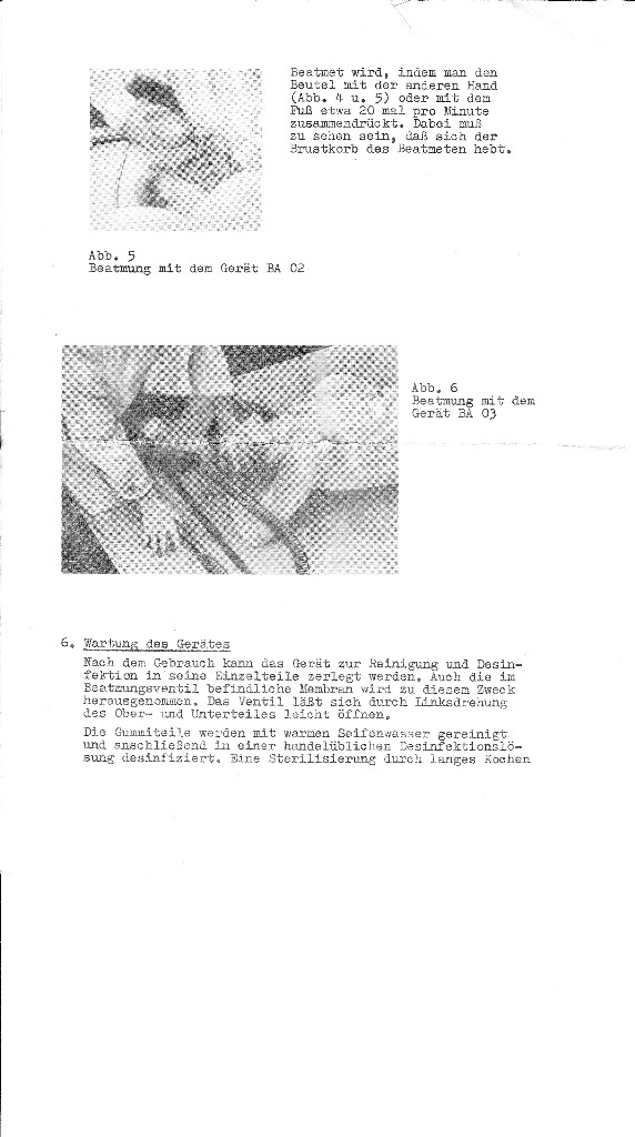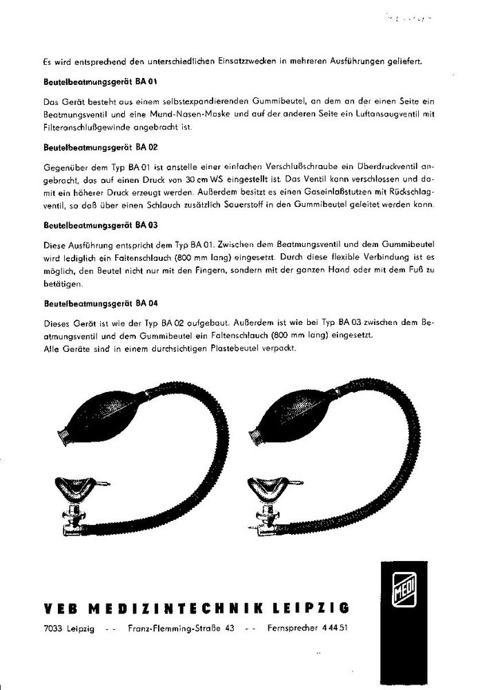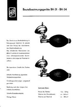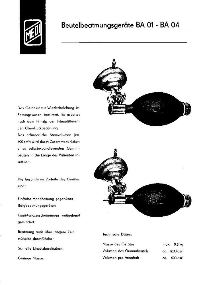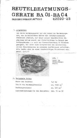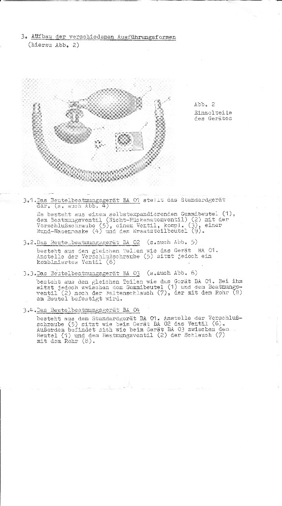 Beutelbeatmungsgerät BA 03Medi-Nr.42022Preis 1965 u. 1975: 130,00 MDN (+ 15 % GHS)